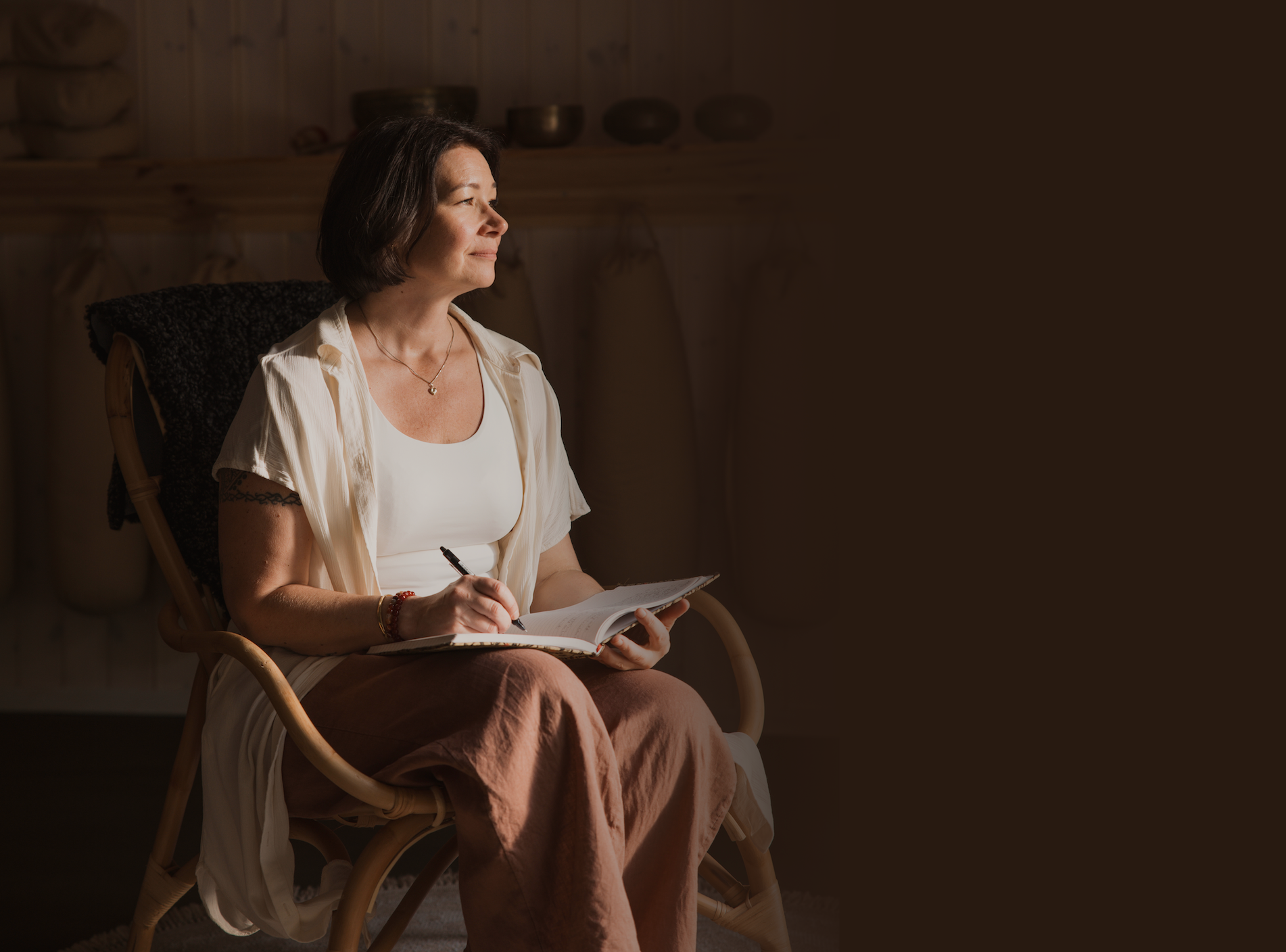 Kvällen är en guidad upplevelse där vi varvar närvaro, reflektion och eget utforskande. Du bjuds in att vara nyfiken, känna efter och lyssna inåt. Det kan vara fint att landa på yogamattan och ha en anteckningsbok nära.
